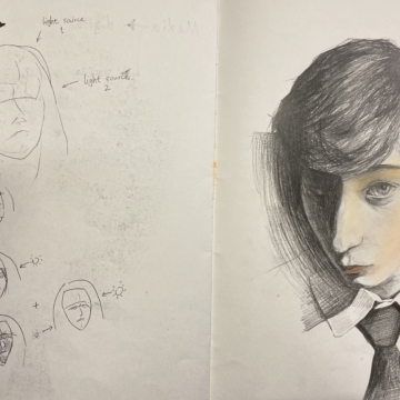 Last year 23 pupils in 3rd Form completed the Junior Certificate Art Project. Each of us had to put together a number of finished art pieces. The themes we worked on ranged from sharks to space travel. However, a major part of the project also required that we show our preparatory sketches and brainstorming, alongside explanations of our individual thought processes.