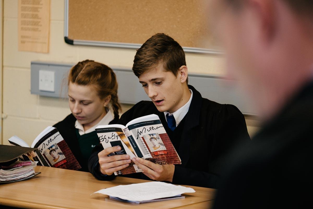 The four strands of study in the Leaving Certificate are: 1. The World of Heroes (Odyssey & Aeneid); 2. Greek Drama & Roman Spectacle; 3. Power & Identity (Alexander the Great & Julius Caesar); and 4. Gods & Humans (Mythology, belief and ritual). End-of-term college examinations, classroom tests, essay-writing, debates, conversation classes, class presentations are all part of the preparatory work for the two-and-a-half hour Leaving Certificate examination, during which pupils will answer six questions. There is also a Research Study Report (RSR) that students will submit at the end of Michaelmas term of their 6th Form. This will be worth 20% of their overall Leaving Certificate grade.